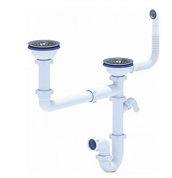 Комплектация Отводная арматура для двух разноуровневых чаш с выпусками 3 ” (D=90мм) и переливом
