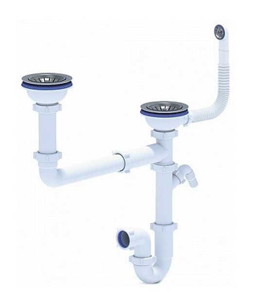 Комплектация Отводная арматура для двух разноуровневых чаш с выпусками 3 ” (D=90мм) и переливом