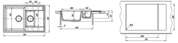 Размеры чаши 345 х 430 мм, 155 х 290 мм
