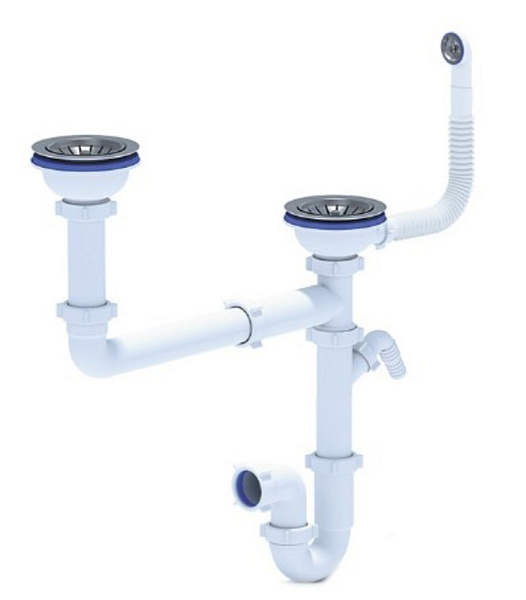 Комплектация Отводная арматура для двух разноуровневых чаш с выпусками 3 ” (D=90мм) и переливом