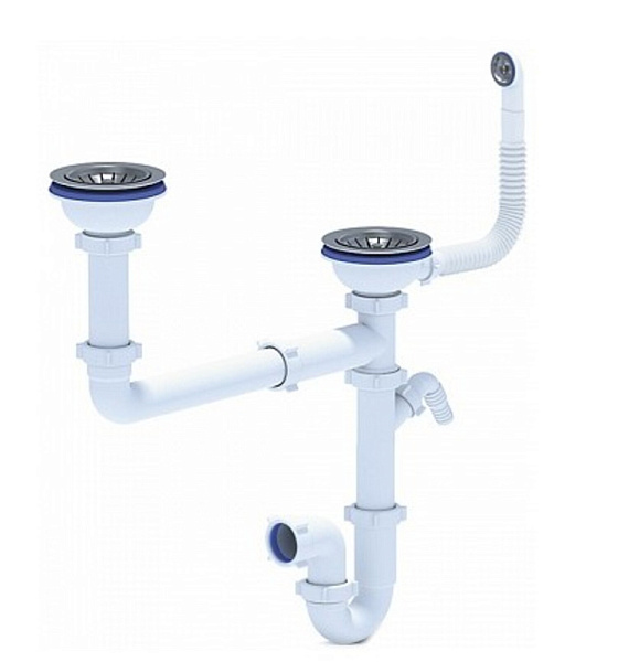 Комплектация Отводная арматура для двух разноуровневых чаш с выпусками 3 ” (D=90мм) и переливом