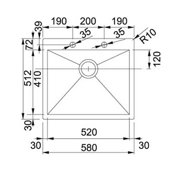Размер мойки 58х51,2 см