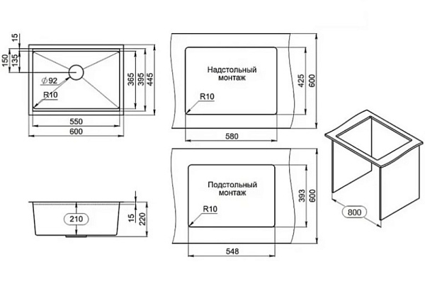 GRANULA KS-6045U мойка черный матовый