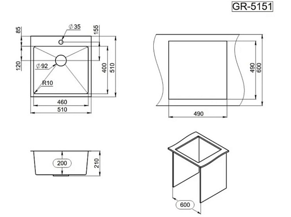 GRANULA GR-5151 мойка матовый графит