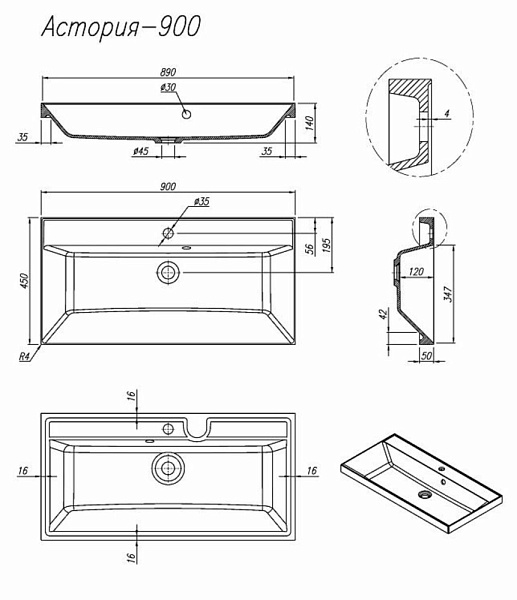 FLORENTINA АСТОРИЯ 900 раковина серый шелк