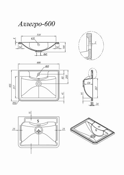 FLORENTINA АЛЛЕГРО 600 раковина антрацит