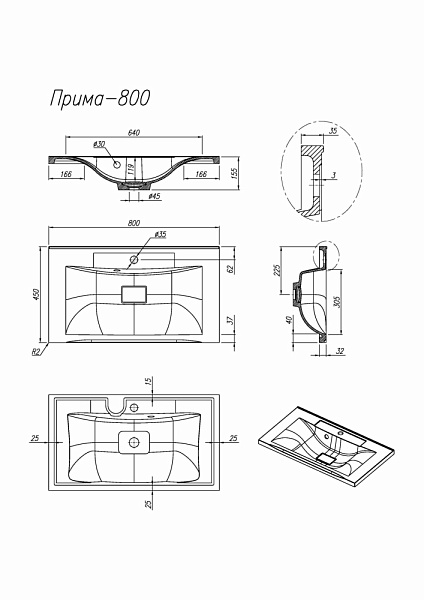 FLORENTINA ПРИМА 800 раковина антрацит