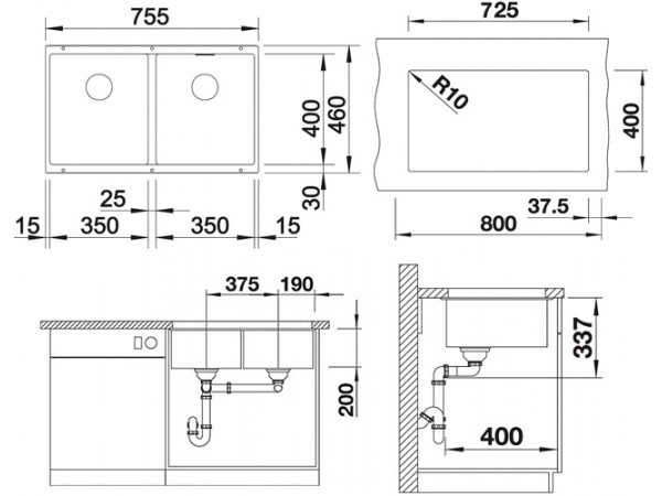 BLANCO SUBLINE 350/350-U SILGRANIT мойка мягкий белый