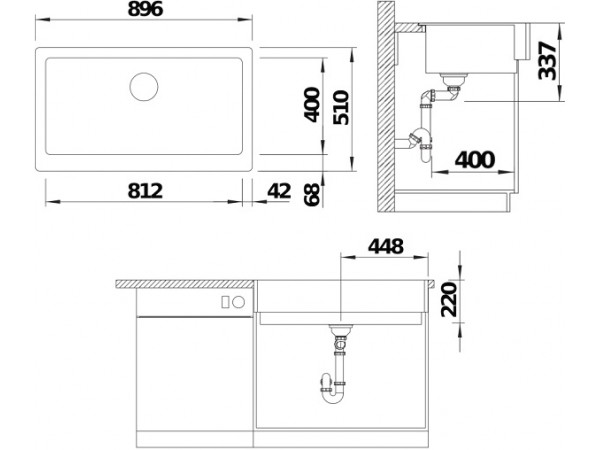 Идеальное сочетание: фронтальная видимая стенка мойки подходит для шкафа шириной 90 см