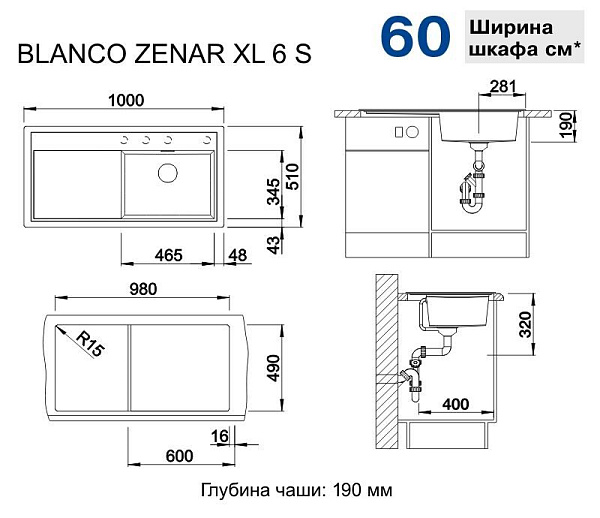 BLANCO ZENAR XL 6S мойка чаша справа вулканический серый