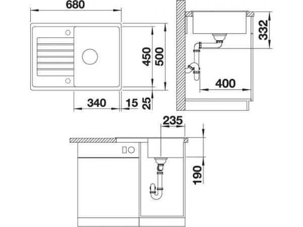 мойка выполнена оборачиваемой, что позволяет разместить её крылом в любую сторону, вокруг крыла в виде рамки выполнена площадка для размещения смесителя и акссессуаров Бланко