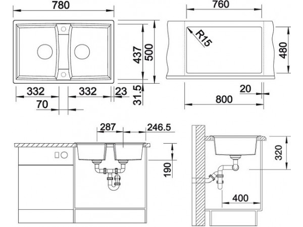 Дополнительные аксессуары: разделочная доска из массива бука или из белого пластика, корзина для посуды из нержавеющей стали