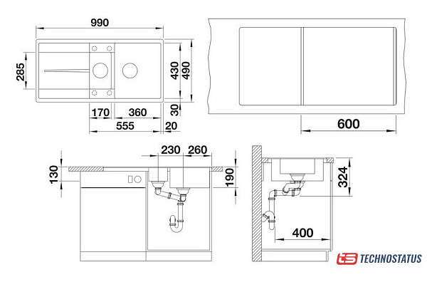 Очень просторная и глубокая чаша для мытья посуды больших размеров