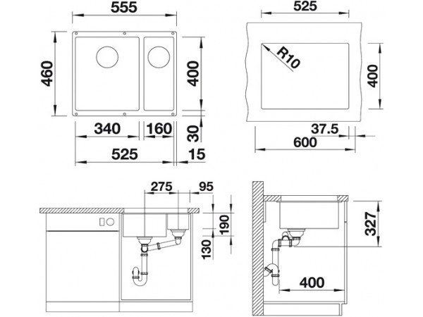 BLANCO SUBLINE 340/160-U мойка чаша справа вулканический серый