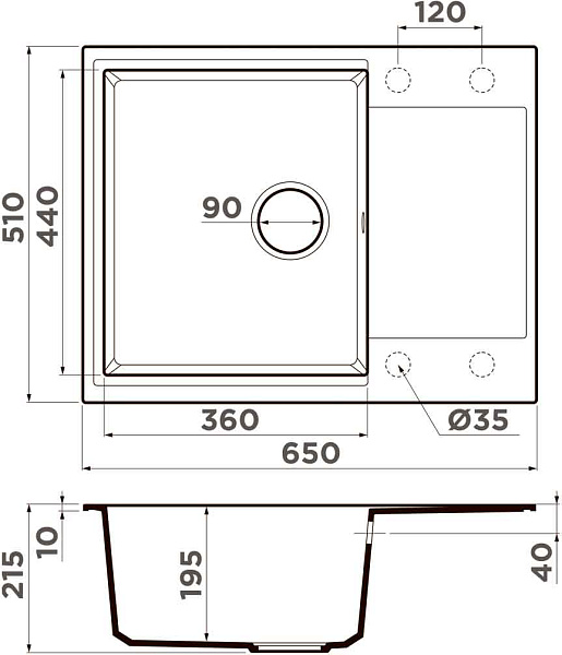 • Помимо гранита, в состав материала входит молотый кварц мельчайших размеров, которому характерны непревзойденная прочность и устойчивость к природным и химическим воздействиям. Свойства данного компонента вместе с долговечностью гранита обеспечивают мойке прочность и делают её устойчивой к любым механическим повреждениям: деформациям, сколам;