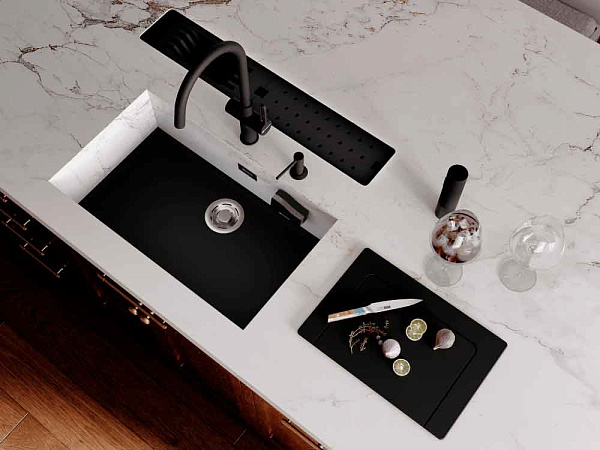 KITEN подходит для МНОГИХ видов столешниц независимо от материала и толщины: акриловый камень, кварц или керамика — мойка совместима с каждым из них
