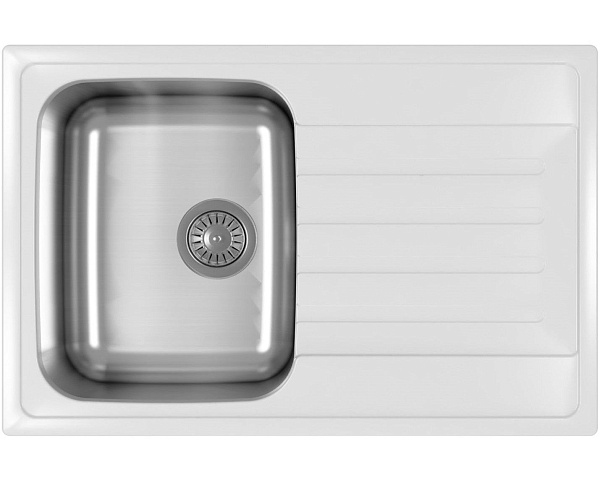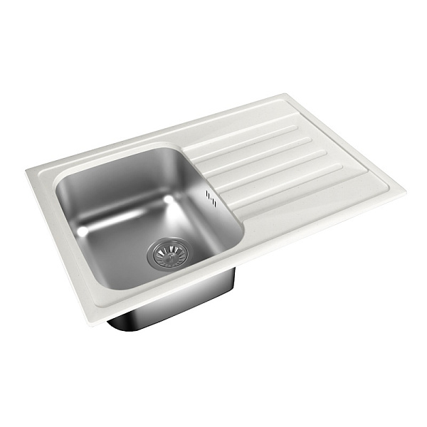 Мойка оснащена одной глубокой чашей и удобным крылом, которое можно использовать как дополнительную рабочую поверхность или зону для сушки посуды. Размер 760×500 мм обеспечивает достаточно пространства для комфортной работы, а врезной тип установки позволяет органично интегрировать мойку в столешницу.