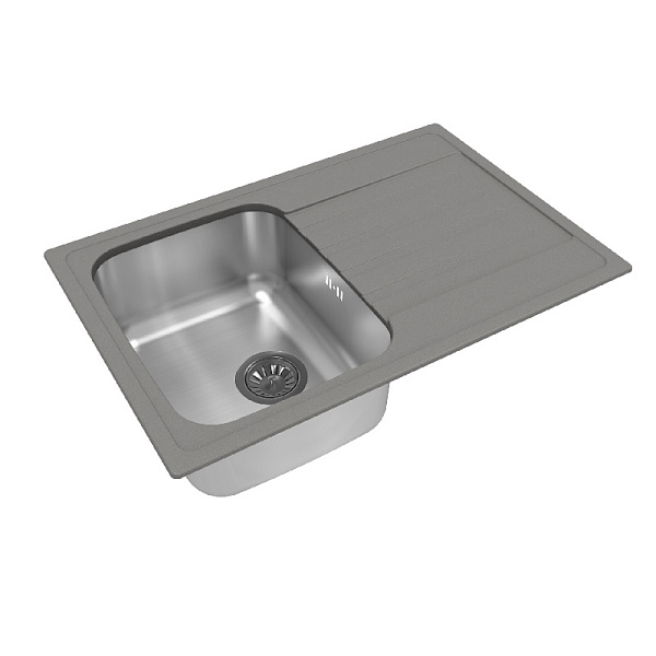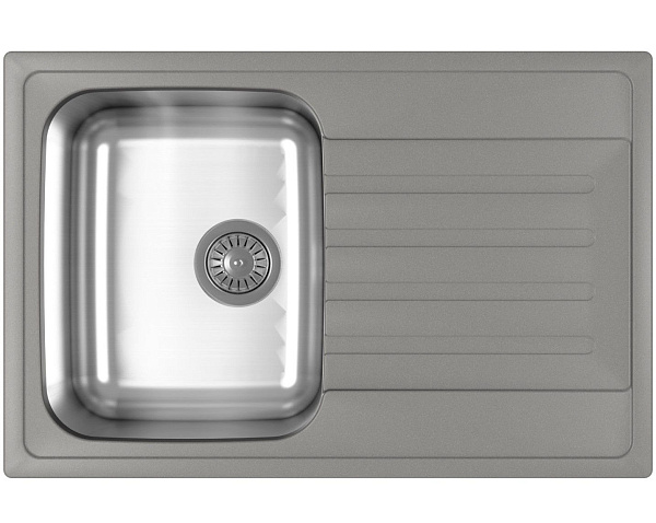 Мойка оснащена одной глубокой чашей и удобным крылом, которое можно использовать как дополнительную рабочую поверхность или зону для сушки посуды. Размер 760×500 мм обеспечивает достаточно пространства для комфортной работы, а врезной тип установки позволяет органично интегрировать мойку в столешницу.