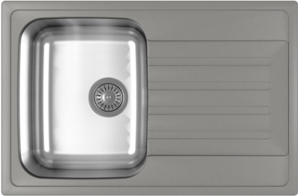 Мойка оснащена одной глубокой чашей и удобным крылом, которое можно использовать как дополнительную рабочую поверхность или зону для сушки посуды. Размер 760×500 мм обеспечивает достаточно пространства для комфортной работы, а врезной тип установки позволяет органично интегрировать мойку в столешницу.