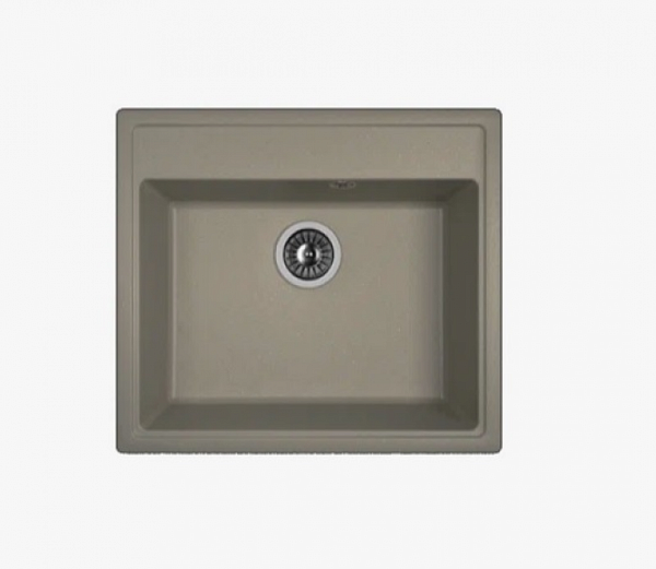 Размеры мойки — 570×500 мм. Она оснащена одной глубокой чашей и крылом, которое удобно использовать как зону для сушки или подготовки продуктов. Прямоугольная форма и врезной тип установки обеспечивают плотное прилегание к столешнице, создавая аккуратный и завершённый вид.