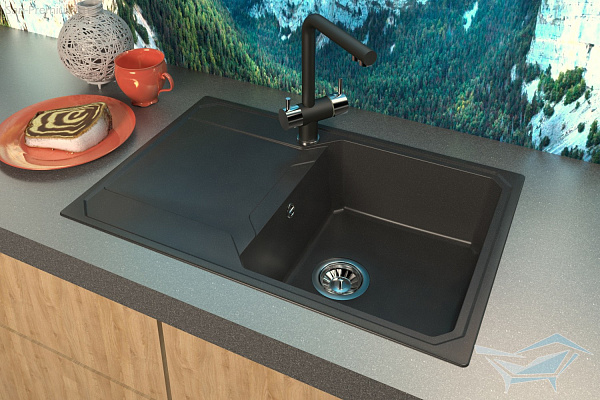 Мойка выполнена из искусственного камня — прочного и долговечного материала, устойчивого к механическим повреждениям, перепадам температур и воздействию бытовой химии. Поверхность обладает антибактериальными свойствами и эффектом самоочищения, что делает уход за ней особенно простым и гигиеничным.
