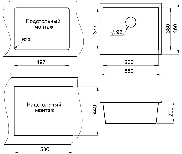 KUPPERSBERG UNIVERSA 60 NL 1B DARK ROCK мойка темный графит