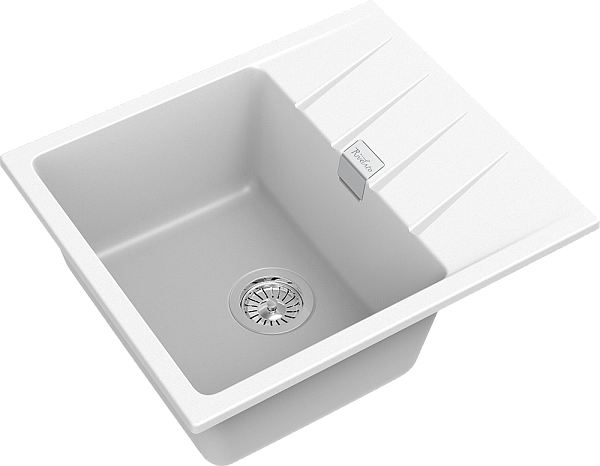 Мойка имеет прямоугольную форму с крылом, изготовлена из материала Terigranit. Размер чаши составляет 340 х 440 х 200 мм, а общий размер — 580 х 500 мм. Способ монтажа — классический врезной, установочный проём — 560 х 480 мм. В комплект входят сливная арматура, шаблон и крепёж. Гарантия на товар — 15 лет.