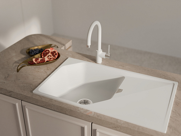Модель отличается ярким дизайном и функциональностью. У неё есть панель перелива оригинального дизайна, глубокая чаша и просторное крыло для сушки посуды и столовых приборов. Форма мойки — прямоугольная с крылом, материал — Terigranit. Размер чаши составляет 470 х 460 х 200 мм, а общий размер — 850 х 500 мм. Способ монтажа — классический врезной, установочный проём — 830 х 480 мм. 4 5 6