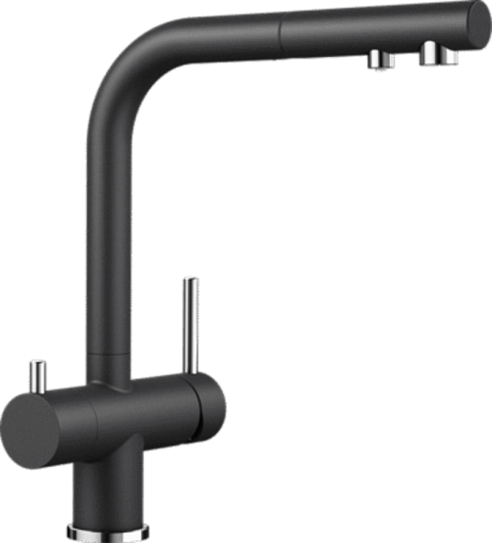 Как и у всех смесителей BLANCO для подключения фильтра в новинке предусмотрены два отдельных рычага для управления подачей питьевой и водопроводной воды, для холодной и горячей - справа и для фильтрованной - слева. В новом смесителе, как и в прежних версиях, питьевая и водопроводная вода подаются по разным шлангам и выводятся через разные изливы, обеспечивая гигиеничность.