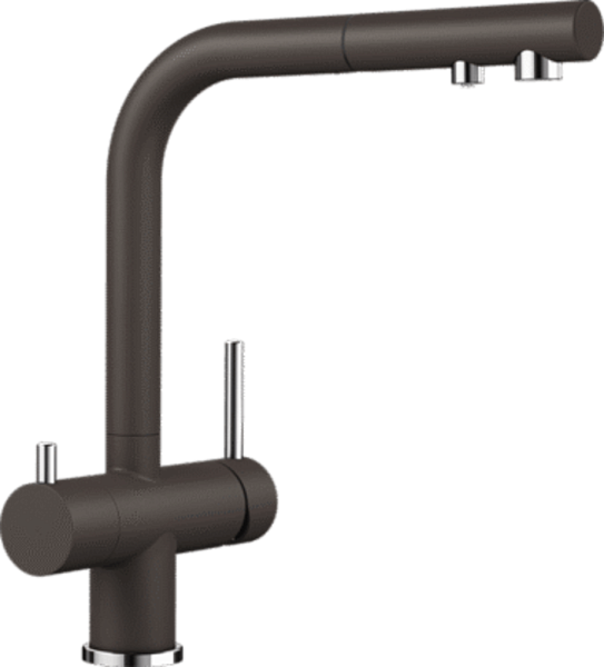 Как и у всех смесителей BLANCO для подключения фильтра в новинке предусмотрены два отдельных рычага для управления подачей питьевой и водопроводной воды, для холодной и горячей - справа и для фильтрованной - слева. В новом смесителе, как и в прежних версиях, питьевая и водопроводная вода подаются по разным шлангам и выводятся через разные изливы, обеспечивая гигиеничность.