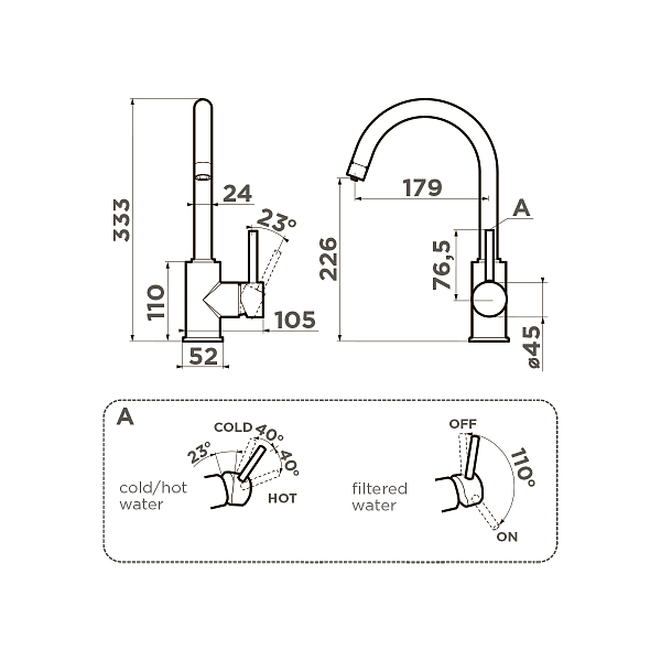 • Новая удобная технология системы ручки "2 в 1 Multi" - позволяет переключить с водопроводной на фильтрованную воду в одно касание;