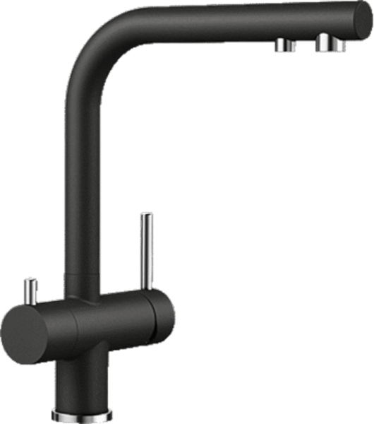 Удобный комбинированный смеситель с рычагом холодной и горячей воды справа, и рычагом для фильтрованной воды слева