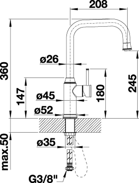 Легкое подключение гибкими шлангами длиной 450 мм с гайкой ⅜“