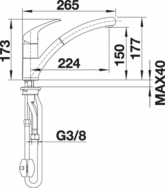 Легкое подключение гибкими шлангами длиной 450 мм с гайкой ⅜“