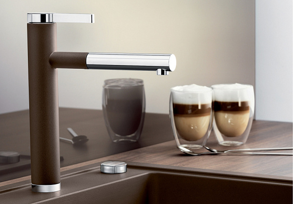 Цвет смесителя полностью совпадает с цветами моек и чаш из материала SILGRANIT®