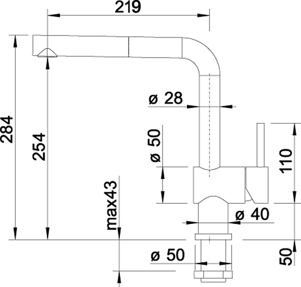 Высокий излив позволяет легко наполнить водой высокие кастрюли и вазы