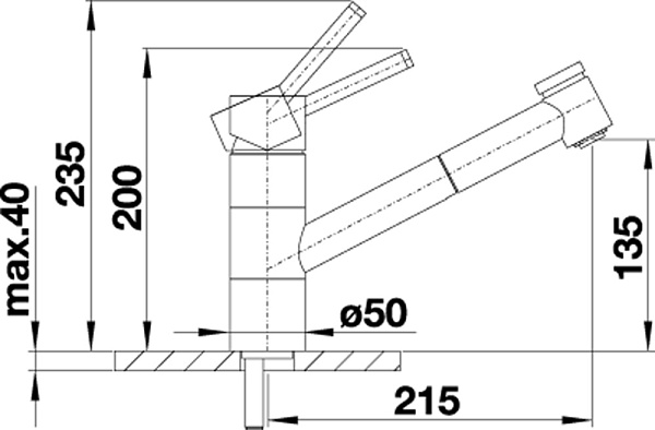 Выдвижной излив с функцией переключения струя/душ