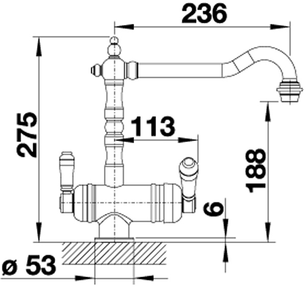 Один совмещенный излив для питьевой и обычной воды с разделением рассекателя