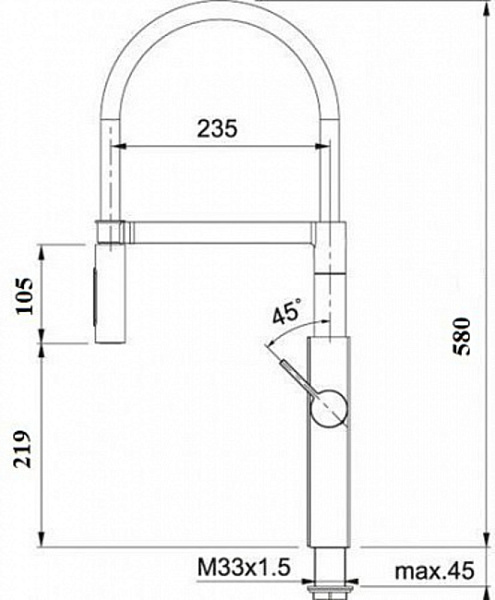 Однорычажный смеситель с поворотным изливом и возможностью переключением струя-душ