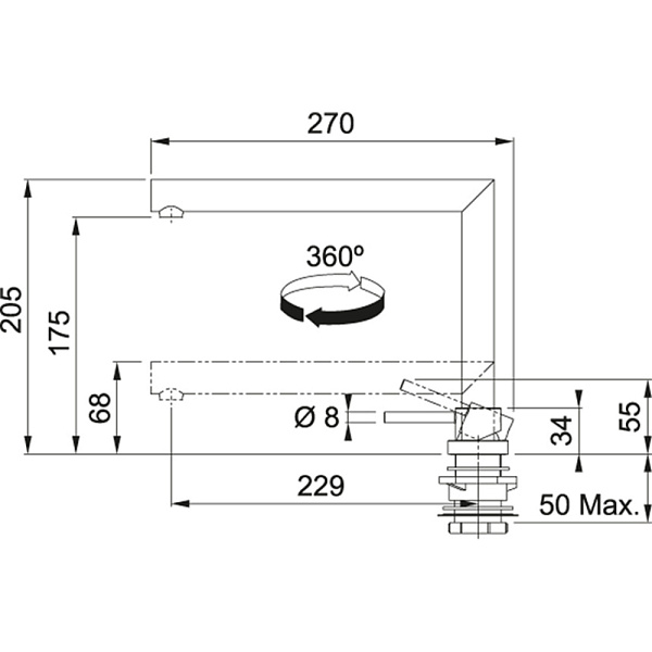 Особенности: Для установки у окна.Керамический картридж Ø 25мм.Угол вращения 360 градусов
