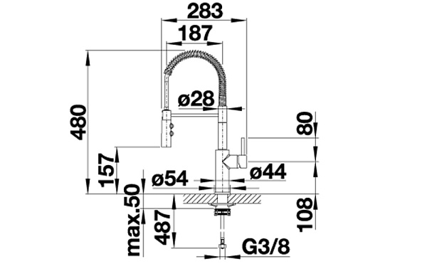 Гибкий излив (пружина из нержавеющей стали) с подвижным шлангом