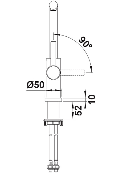 Высокий поворотный излив для удобного наполнения кастрюль и ваз.