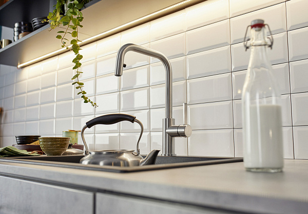 Возможность установки близко к стене благодаря рычагу управления с вертикальным нулевым положением