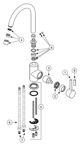Высокий излив позволяет легко наполнять большие кастрюли или вазы