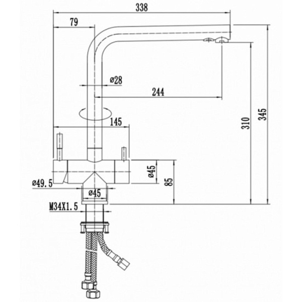 Комплектация: гибкая подводка, прокладки, система крепежа