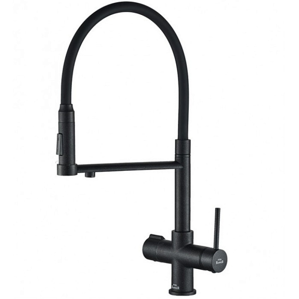 Кухонный смеситель Steel Hammer SH 2003 black комбинированный со съёмным шлангом. Смеситель обеспечивает максимально удобное использование и экономит место для дополнительных аксессуаров. Смеситель комбинированного типа под фильтр для очистки воды. Фильтрованная вода подается по отдельной трубке и не смешивается с водопроводной водой.