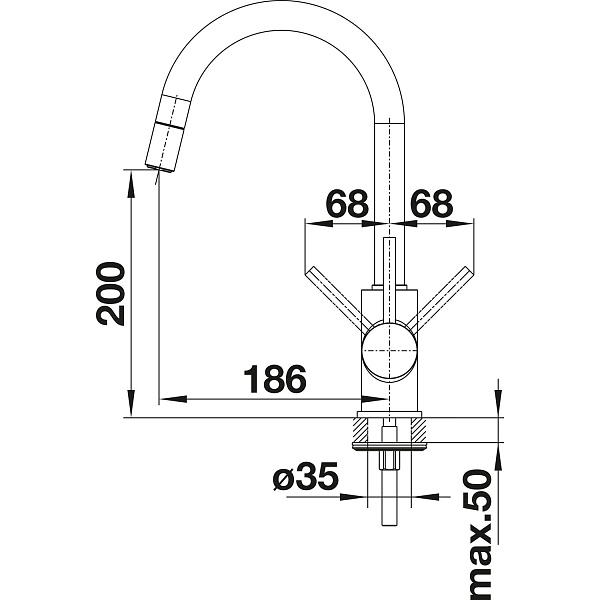 Высокий излив позволяет легко наполнять большие кастрюли или вазы