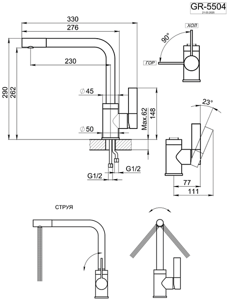 GRANULA GR-5504 смеситель нержавеющая сталь