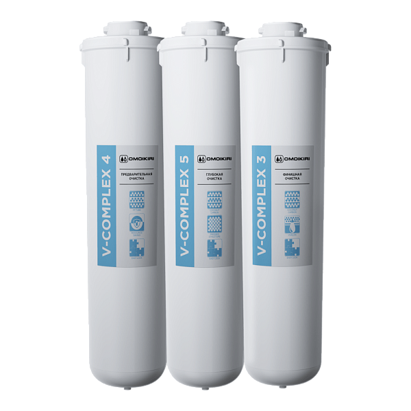 V-Complex 5. Глубокая очистка. Изготовлен по технологии карбонблок с волокном с использованием мелкодисперсного активированного кокосового угля. Благодаря плотной структуре эффективно удаляет из воды органические примеси и активный хлор. Отфильтровывает частицы размером до 3 микрон. Ионообменные нити Vivalon с модифицированными селективными хелатными группами глубоко и необратимо очищает воду от тяжёлых металлов. Содержит серебро в активной ионной форме.