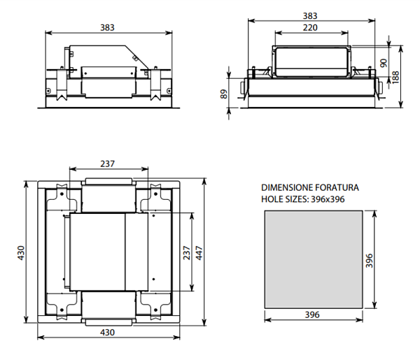 Габариты ниши для встраивания, Ш х Г, мм: 396 х 396
